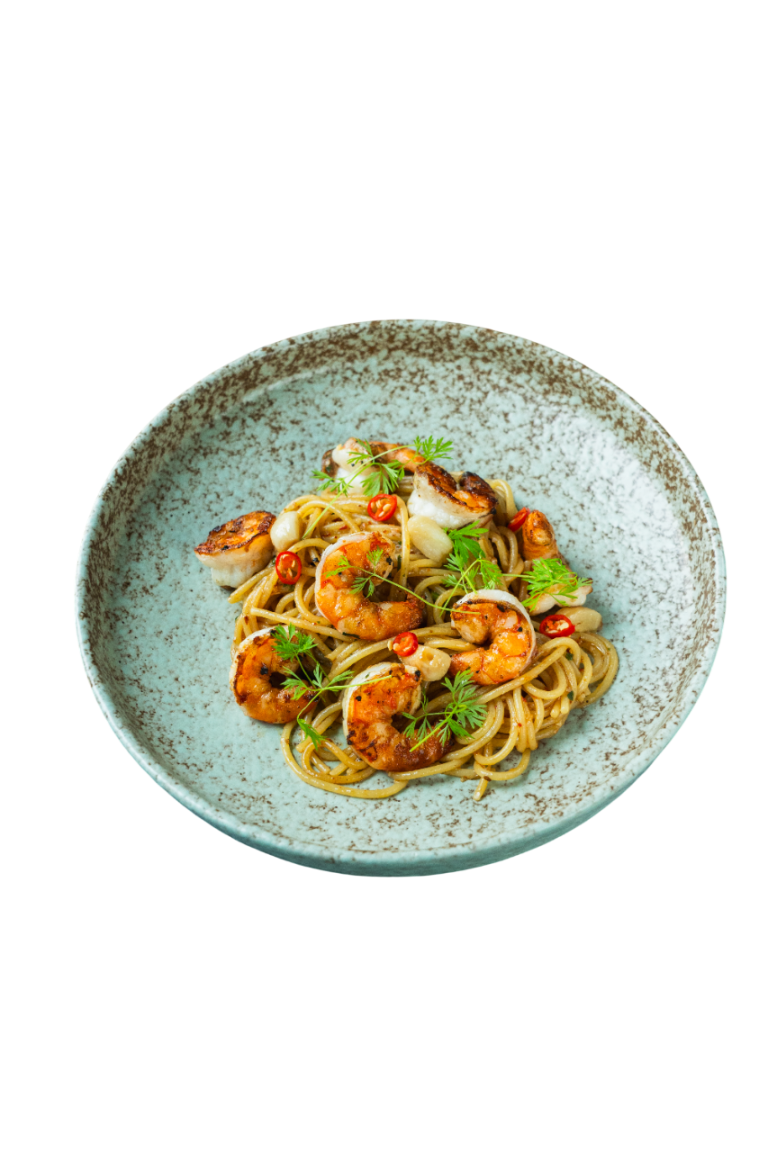 Spaghetti | Grilled Prawn Meat | Confit Garlic | Chili